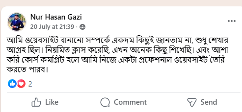 শুধু আমার কথা নয়, শুনুন আমার স্টুডেন্টদের অভিজ্ঞতা—যারা শূন্য থেকে শুরু করে আজ সফলভাবে ওয়েবসাইট বানাচ্ছে, ফ্রিল্যান্সিং করছে এবং নিজের ক্যারিয়ারকে নতুন উচ্চতায় নিয়ে গেছে।